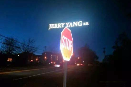 2017年11月17日上午,“楊向中路”("Jerry Yang RD",楊向中英文名字為"Jerry Yang")路牌在美國康州大學那條繁華的路邊豎起,當時多家美國和國內(nèi)媒體爭相報道。
