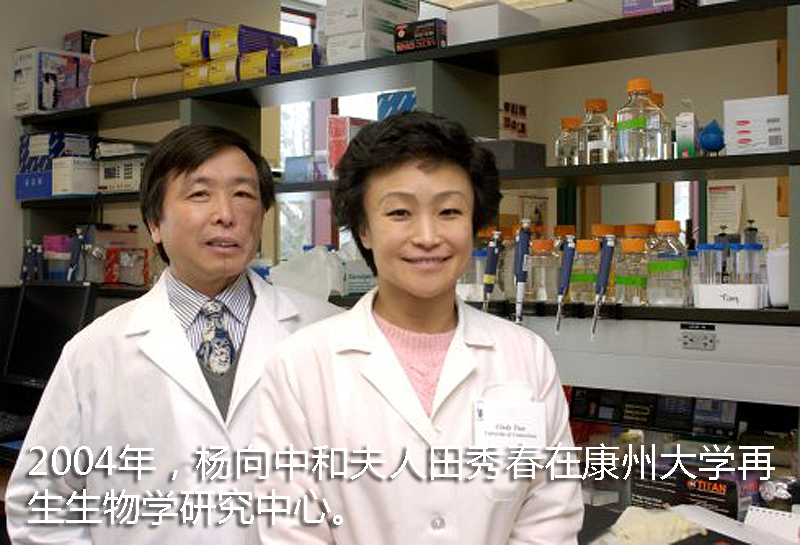 1996年楊向中加入美國康涅狄格大學,任該校動物科學系副教授和生物技術中心動物基因部主任,負責組建該校轉基因動物實驗室;2001年創(chuàng)立康涅狄格大學再生生物學中心,并擔任主任。