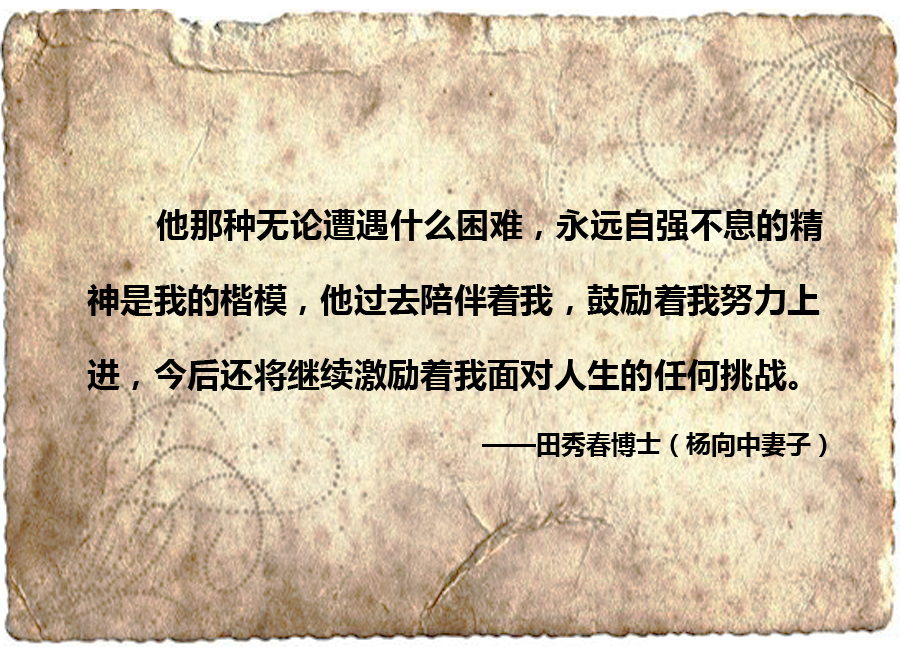在2010年8月《南方周末》發(fā)表的一篇紀念楊向中的文章中,田秀春博士(楊向中夫人)回憶說:“他非常關心中國普通民眾的生存狀況,他幾乎每年都會寫幾本厚厚的建議書。”